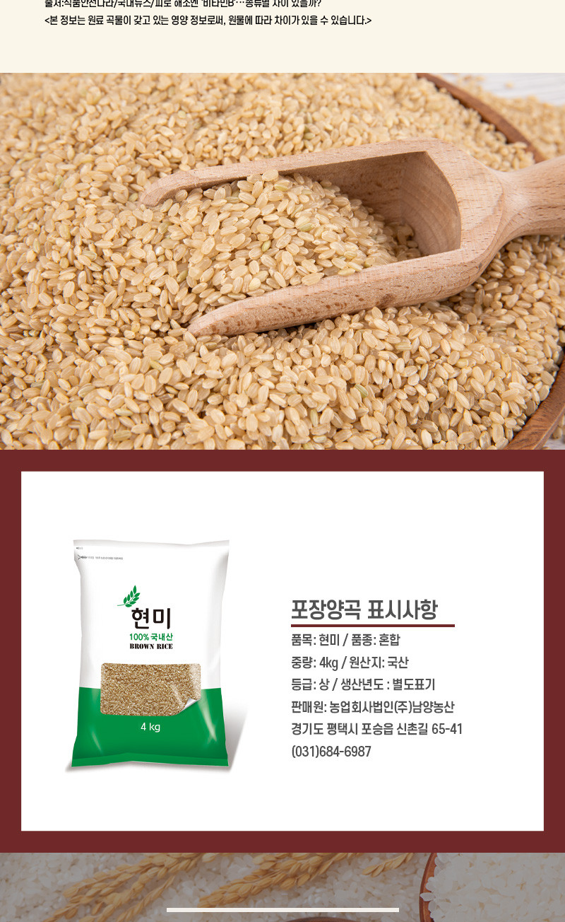 | 상품구성 | 남양농산 햇사레 현미 4kg (24년산) |